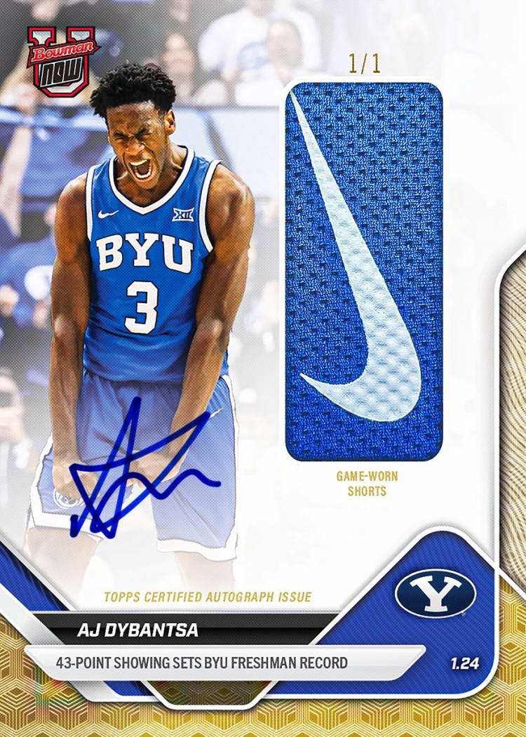 球星卡Topps官方社媒表示:“迪班萨在砍下43分那场比赛所穿球裤上的Nike Swoosh Logo已经被裁剪下来,制作成了一张1-of-1的亲笔签名球星卡。”
