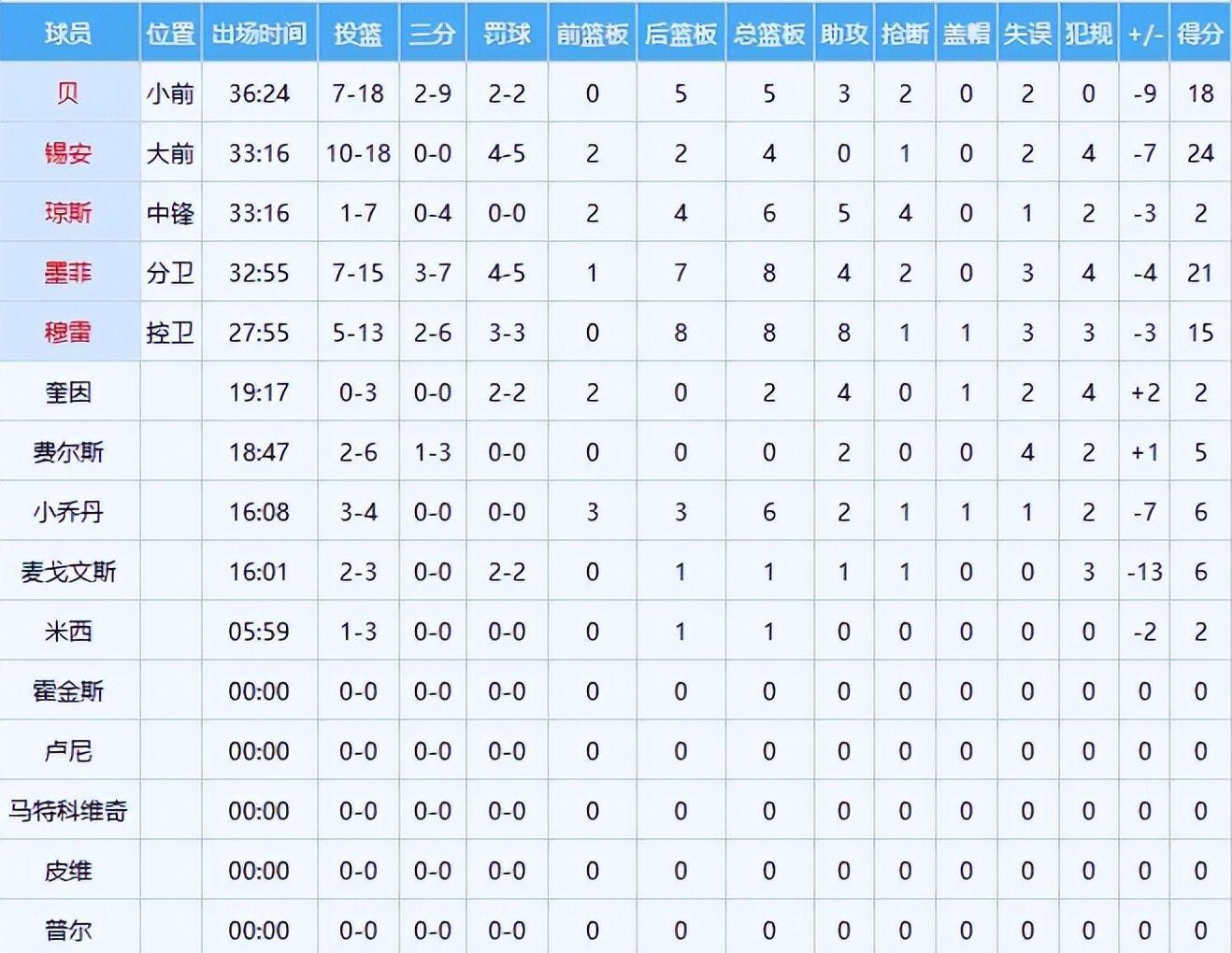 鹈鹕方面,锡安空砍24分4篮板,虽内线冲击力惊人,但面对艾顿+詹姆斯双重围堵,命中率跌至46%;特雷·墨菲21分8篮板,外线4记三分亮眼,但末节彻底失准;贝得18分3篮板,穆雷15分8篮板9助攻逼近三双,四人合力难敌湖人末节集体觉醒,终致溃败。